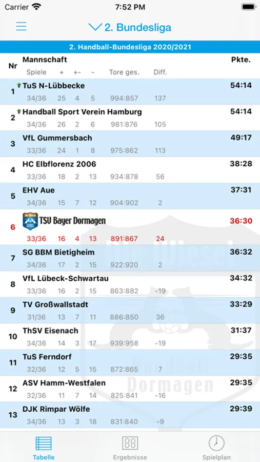 - Alle Mannschaften des TSV Bayer Dormagen enthalten, von der Jugend bis zu den Senioren