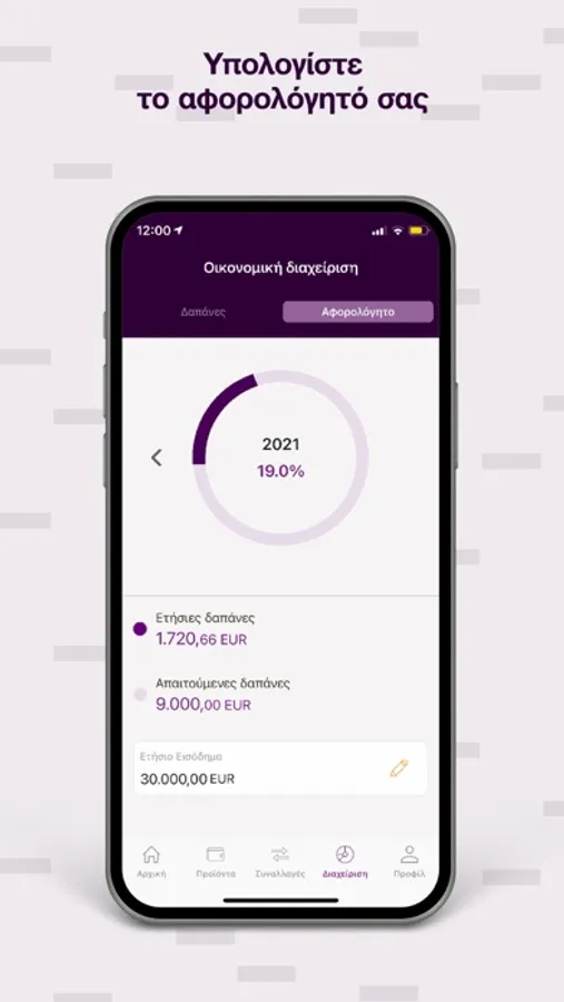 Οικονομική διαχείριση: Παρακολουθήστε τα έξοδά σας ανά κατηγορία και μήνα. Δείτε τις ετήσιες και απαιτούμενες δαπάνες για να χτίσετε το αφορολόγητό σας.