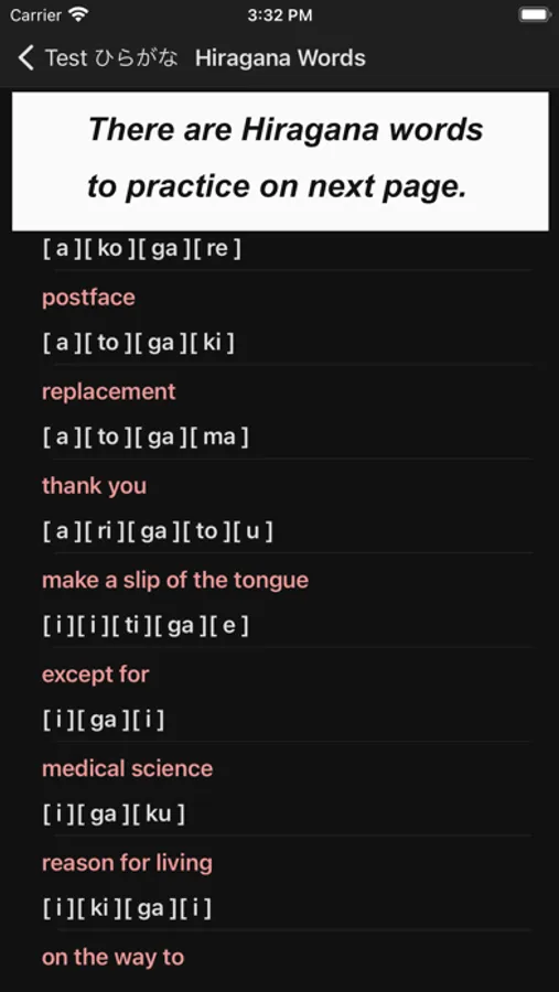 Secondly, you could practice Japanese words consisted of Hiragana letters.