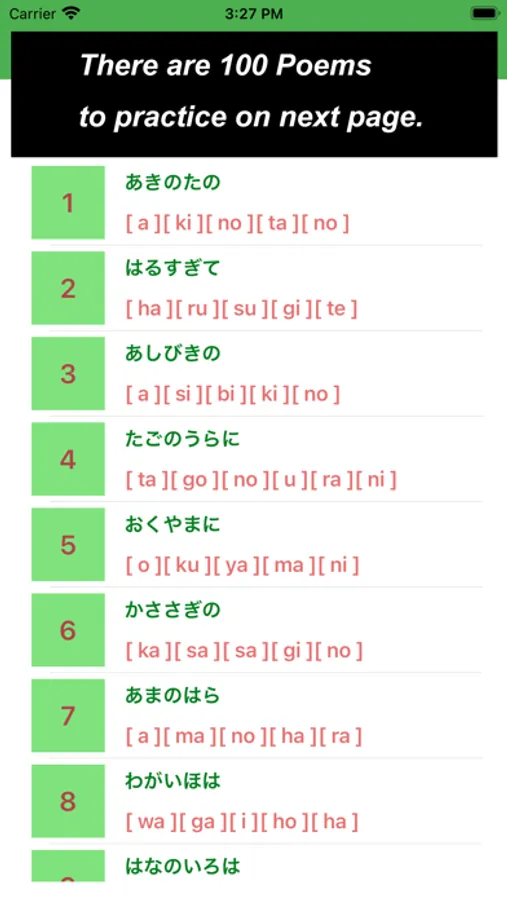 I hope that the app may help you to memorize 100 WAKA poems, so that you would be able to immerse yourself in Japanese literature and enjoy KARUTA game as well.