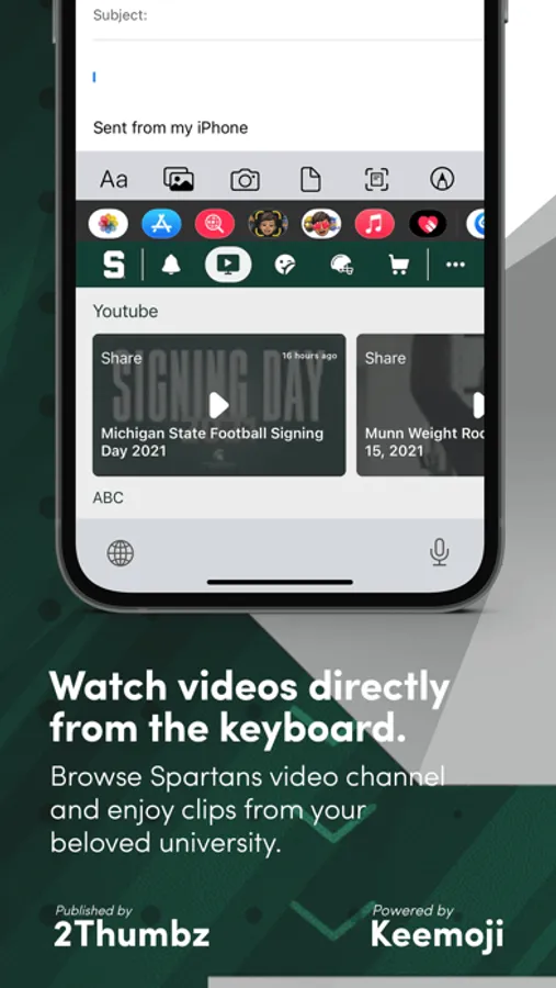 MSU Spartans Official Keyboard is an officially licensed app for enjoying the full MSU experience. This app is owned and published by 2Thumbz, a leading mobile app development company and a trusted collegiate publisher since 2003.