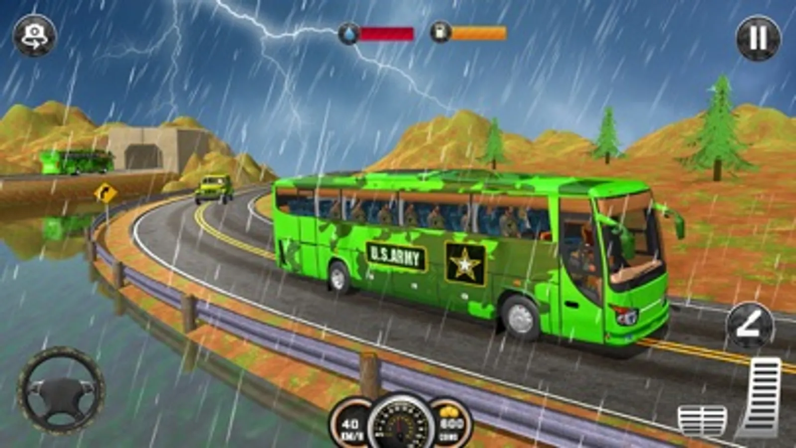 Army coach bus simulator driver passes through the dangerous steep tracks. This real coach bus simulator 3d offers you an amazing experience of off-road driving with realistic bus physics, smooth gameplay handling, and pressure brakes. The Military coach simulator is easy to play and gives different missions to accomplish. You can collect cash to unlock multiple army buses. In the coach bus driving academy 3d, complete your driving rescue missions as a military commando officer.