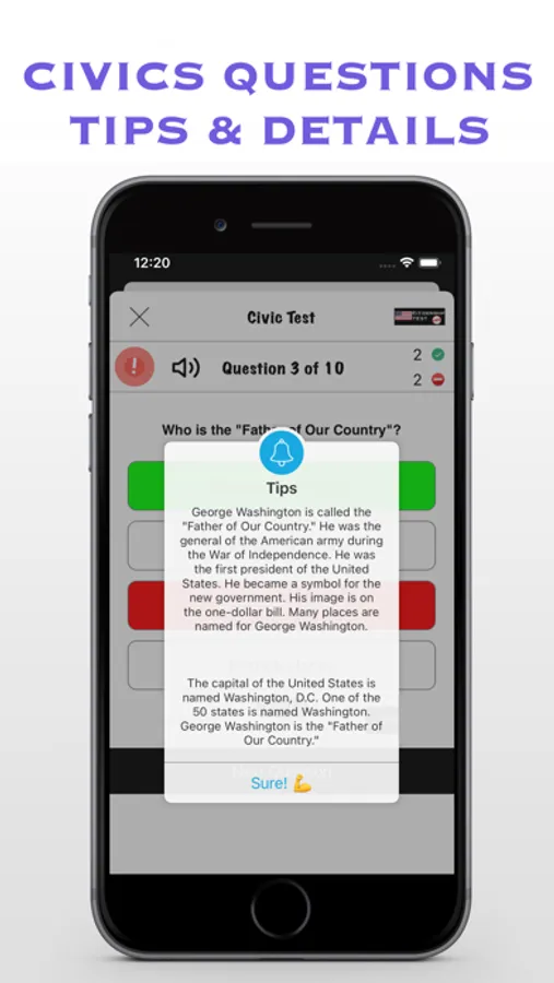 Learn about America's history and all the rights and responsibilities of being an American testing yourself everyday on your phone.