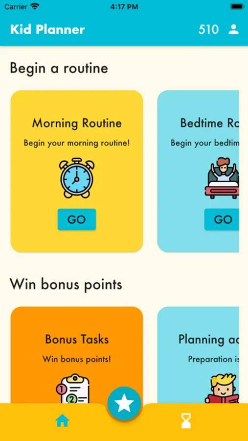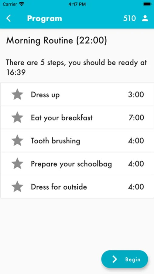 - begin a routine and be motivated to finish it in time, having every step timed and retributed with points ;
