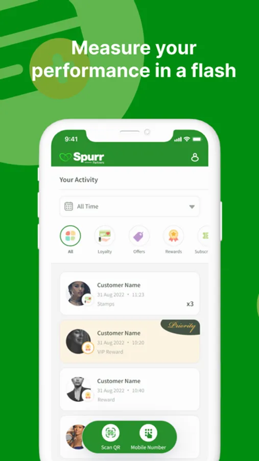Issue stamps and rewards to customers quickly and easily using the Spurr Scanner.