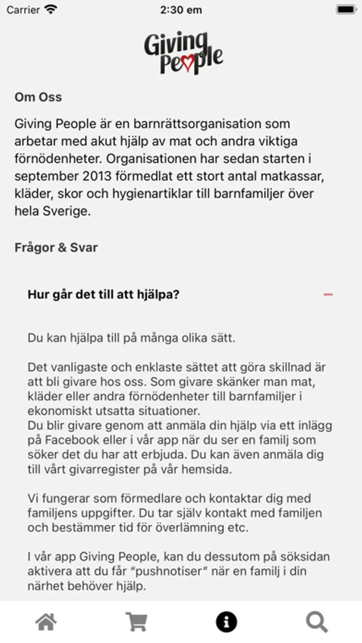 • Få tillgång till våra aktuella insamlingar och kampanjer