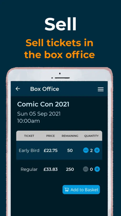 Sell tickets from anywhere with our new Box Office feature that lets your customers pay with cash, or instantly via mobile banking. Simply select the 'Box Office' option on your event and start adding tickets to the basket!