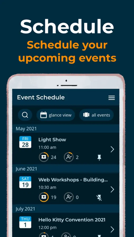 Planning to host hundreds of events? Let us handle it! Effortlessly find and navigate between your events on our My Events page with multiple views and a calendar date finder.