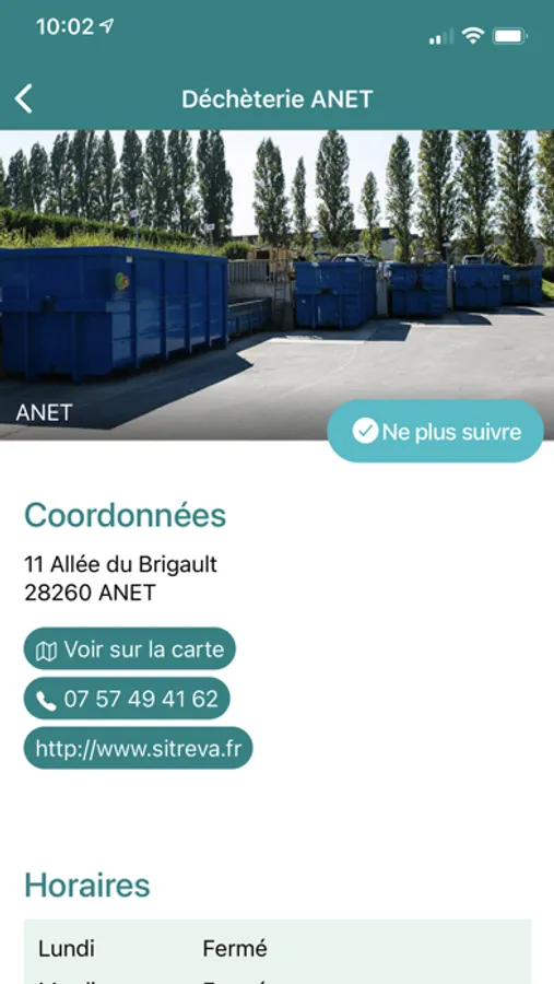 - Possibilité de choisir sa ou ses déchèteries favorites pour recevoir les alertes infos
