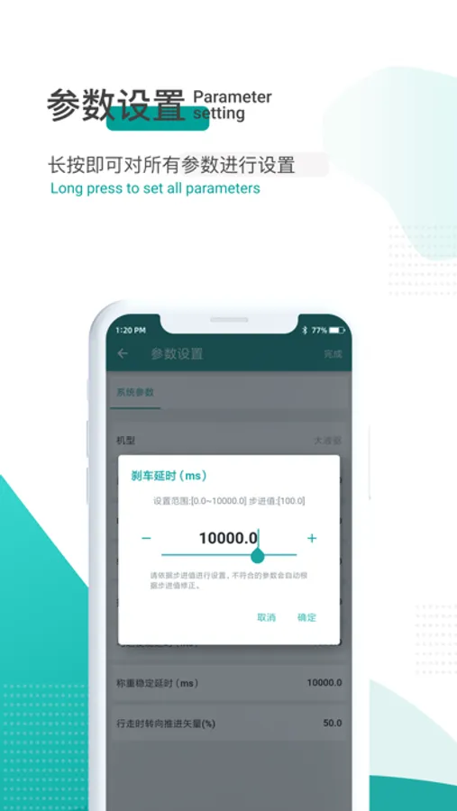 对电控系统进行高速行走曲线、举升后行走曲线、举升曲线及慢速行走的参数设置并且可实现离线状态下的参数设置。