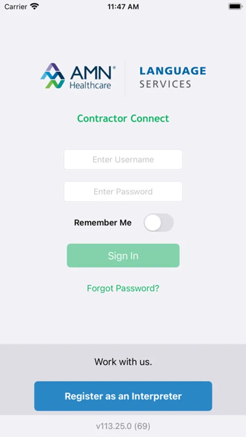 Contractor Connect requires a registration and verification process in order to accept interpreting jobs. You can start the sign up process inside the app.