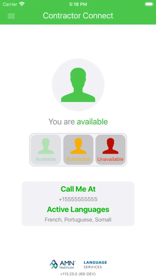 The Contractor Connect application allows you to control your availability for interpreting sessions, receive notifications from AMN, and track your session history.