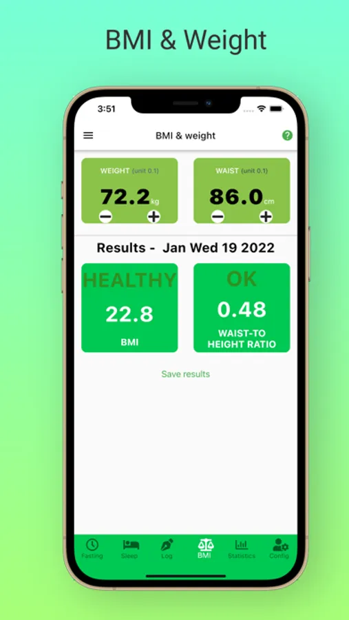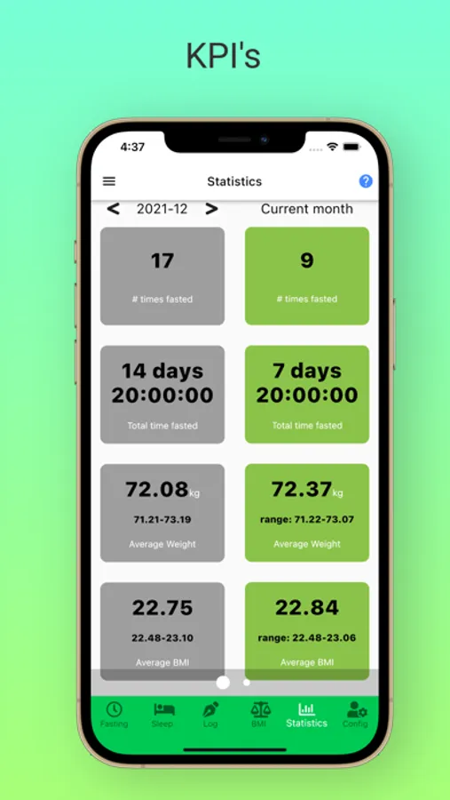 If you use fasting as a diet method, the built in weight tracker may provide useful insights in the relation between fasting and your body weight. On the statistics page these two metrics are placed in correlation with each other so you can see the effects.