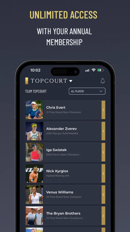 Instant Access to Lessons from 50+ pros like Alexander Zverev, Venus Williams, and Andrey Rublev