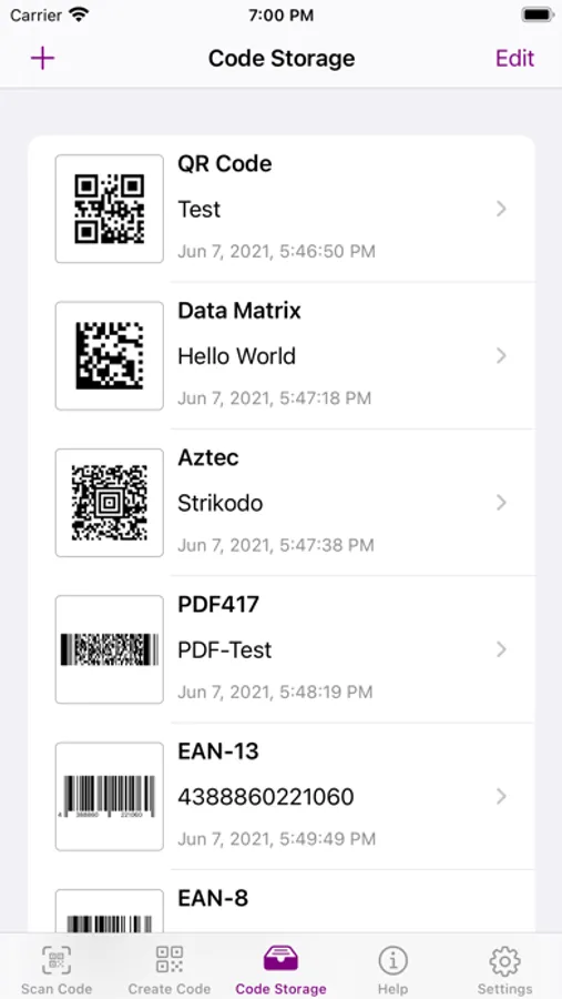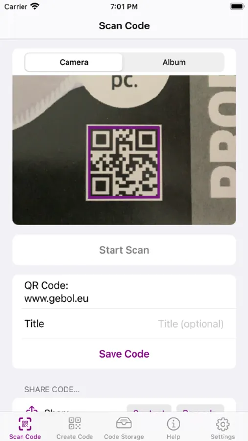 Scanned barcodes can be saved within the App, so you can open them anytime later again, edit them, share its content, process its content etc.