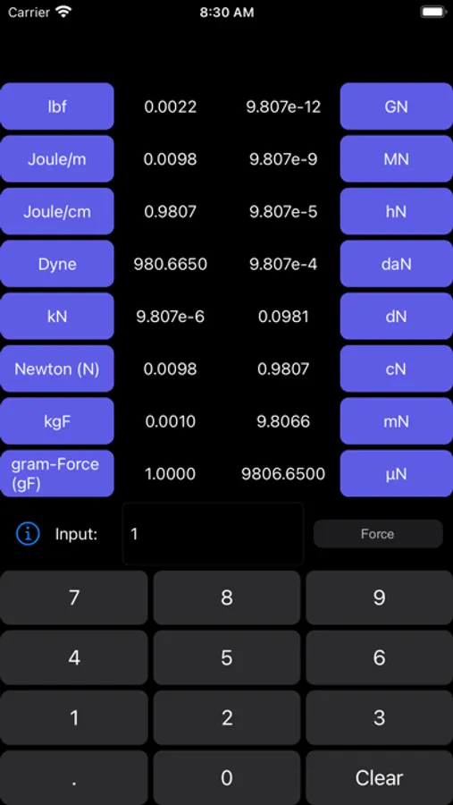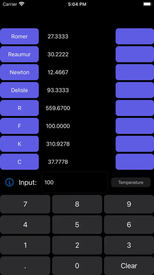 OPie Unit Converter simultaneously converts 16 elements within the following categories: length, temperature, area, volume, weight, angle, digital storage, energy, pressure, force, time, electric current, speed, and luminance. Future updates will add new catagories. The OPie Unit Converter is also part of the OPie RPN Calculator (also available at the App Store).