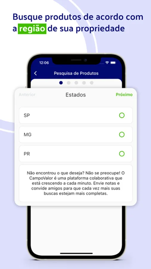 O Aplicativo Campo Valor permite a seus usuários, de forma gratuita e segura, a melhor negociação possível junto aos fornecedores agro, por meio do compartilhamento de informações de compras reais realizadas anteriormente.