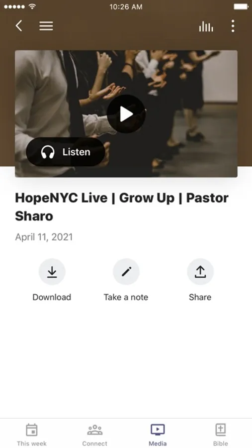 This app will help you stay connected with the day-to-day life of our church. With this app you can: watch or listen to past messages; stay up to date with push notifications; share your favorite messages via Twitter, Facebook, or email; and download messages for offline listening.