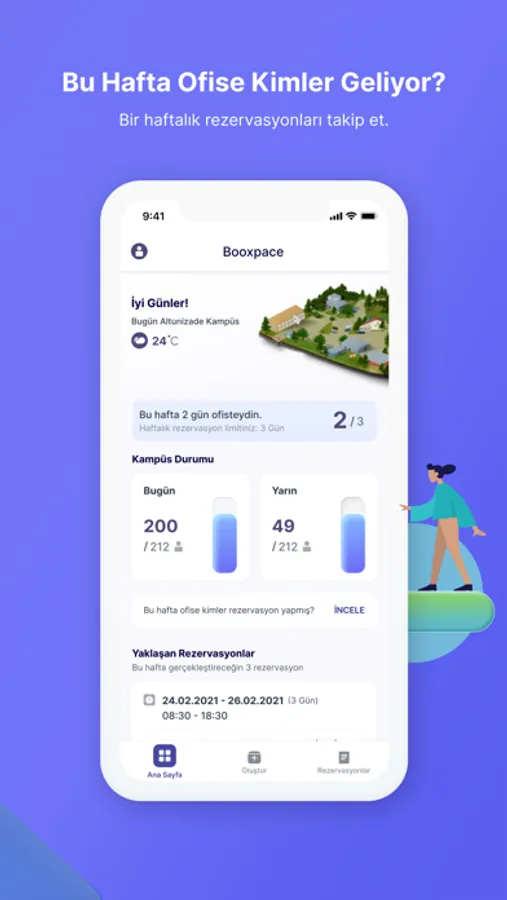 Booxpace - Kampüs rezervasyon sistemi ile kolayca şirkete gideceğiniz günü rezerve edebilir, otopark için yer ayırtabilir ve diğer bir çok ayrıcalıktan faydalanabilirsiniz.