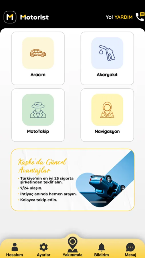 > Akaryakıt, Motosiklet Takip Cihazı, Tekne Takip Cihazı, Kasko, Trafik Sigortası, Seyahat Sağlık Sigortası, Oto Bakım, Araç Muayene, Lastik, MTV, Yol Yardım, Motosikletli Yol Yardım, Gezici Şarj Hizmeti, Navigasyon ve Akaryakıt Zam/İndirim Haberleri ve çok daha fazlası.