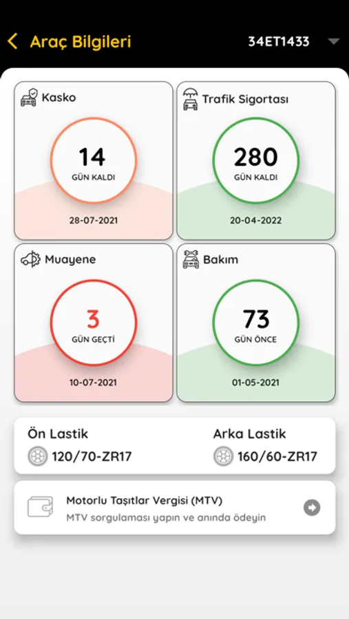 • Kasko, Sigorta, MTV, muayene gibi yükümlülüklerinizi kolayca takip edin.