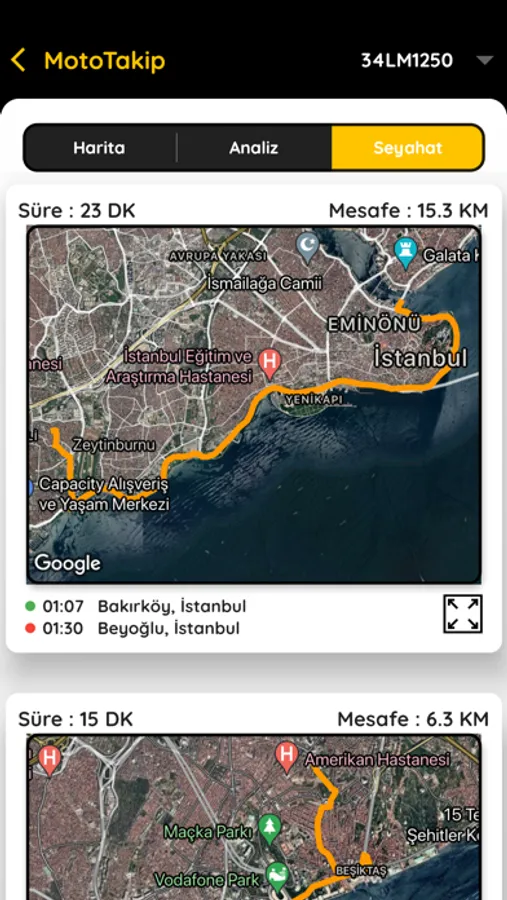 • Motosikletinizi uygulama üzerinden Canlı Takip eder, dilerseniz arkadaşlarınız ve çevreniz ile, dilerseniz daha da önemli olan polis ile konum paylaşarak 155 Polis ekiplerimizden destek isteyebilirsiniz.