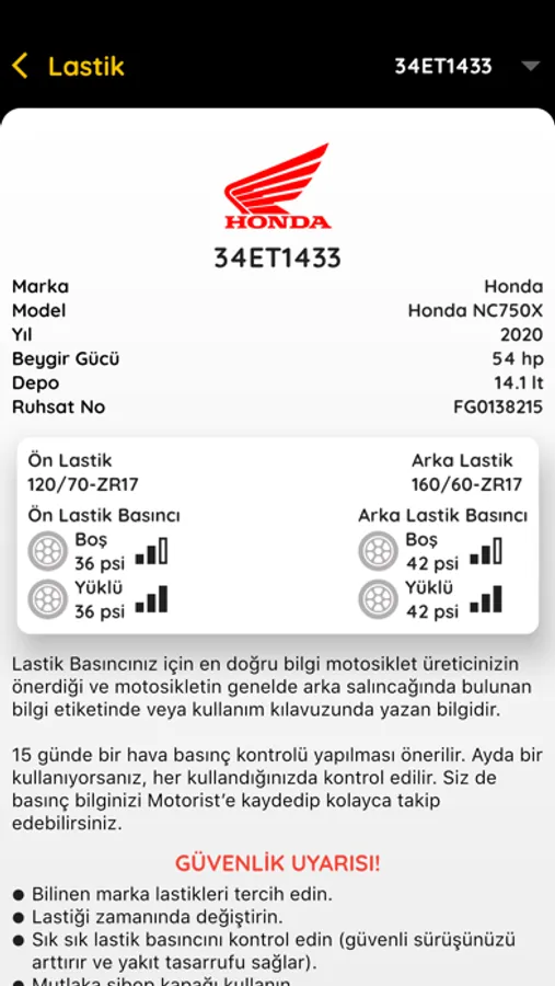 • Lastik basınç bilgilerinizi kaydedin, periyodik aralıklarla takip ederek akaryakıt verimliliğinizi arttırın!