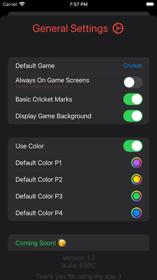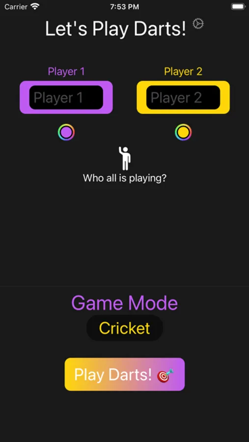 NOTE: The color of player 1 and player 2 will dictate the color scheme of the rest of the app when use color is on.