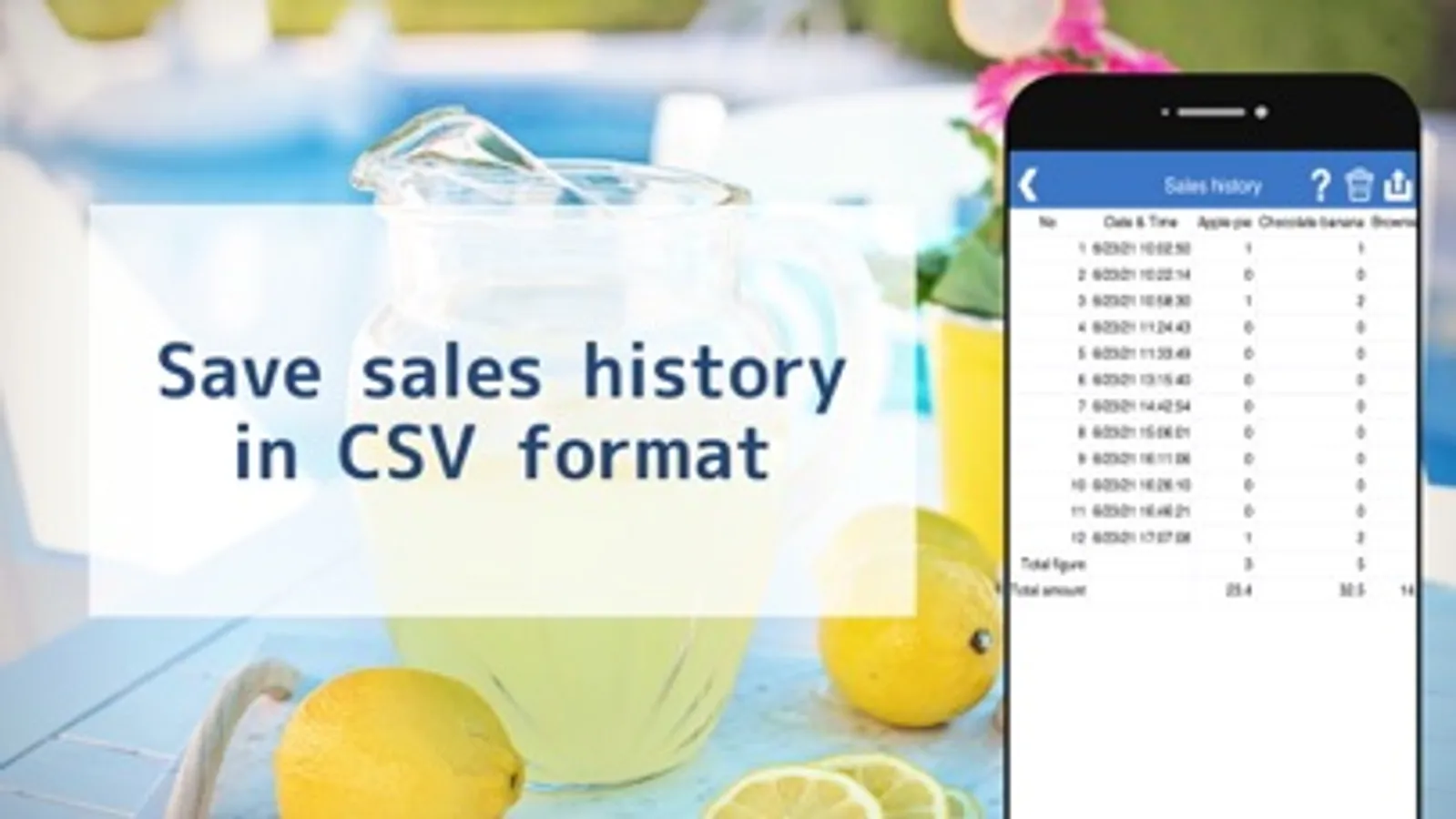 Sales history can be conveniently exported as a CSV file by day.