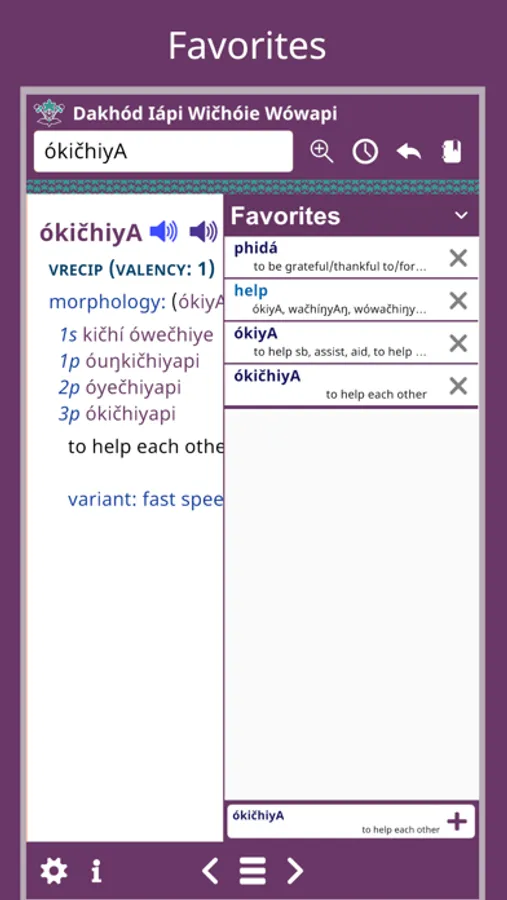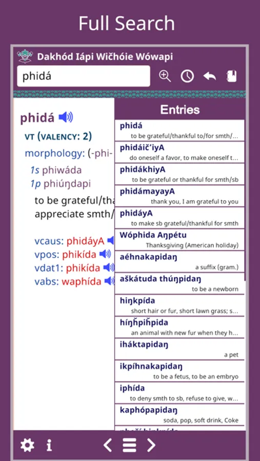 Dakhód Iápi Wičhóie Wówapi is the best way to look up Dakota words, hear pronunciation while on the go. It’s the ultimate electronic Dakota learning and reference tool.
