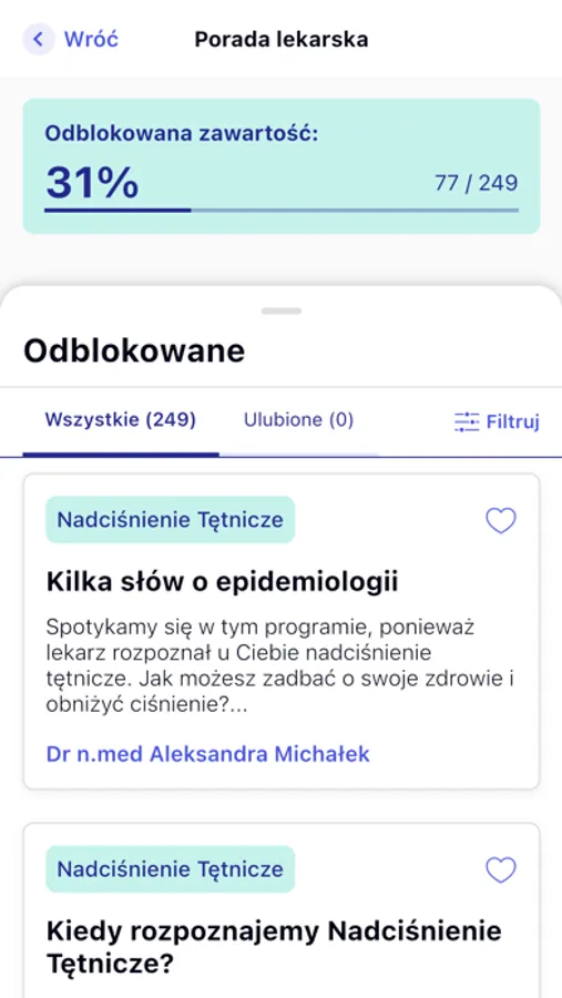 życia oraz w procesie leczenia. Dzięki aplikacji otrzymasz treści edukacyjne, na które nie ma czasu