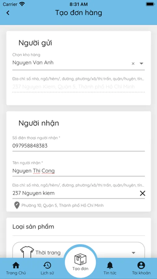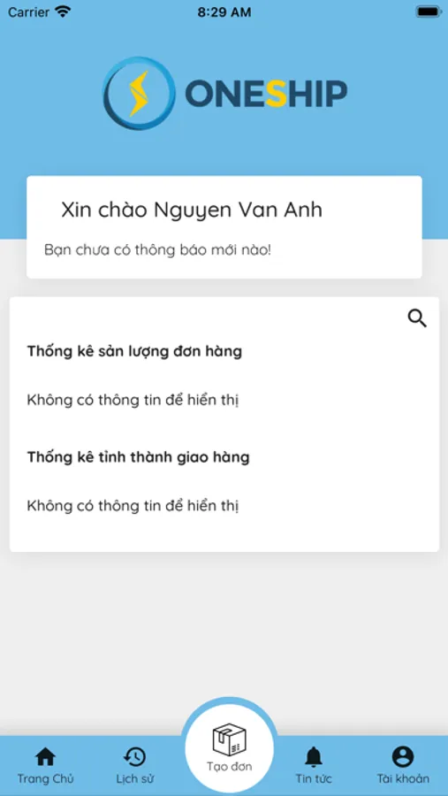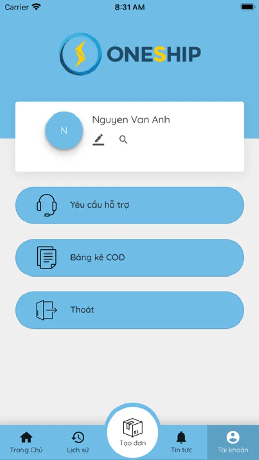 Ứng dụng Quản lý đơn hàng dành cho khách hàng sử dụng dịch vụ của Oneship, bao gồm các tính năng:
