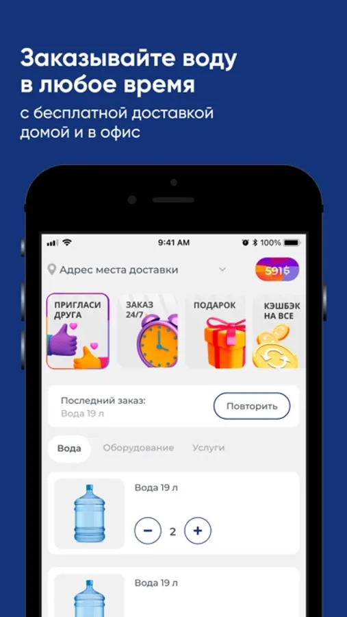 Скачайте приложение «КНЕЖИЦА» на свой смартфон и делайте заказ воды 24/7. Вы сможете повторять заказ нажатием одной кнопки, видеть всю историю покупок и быть в курсе всех акций компании.