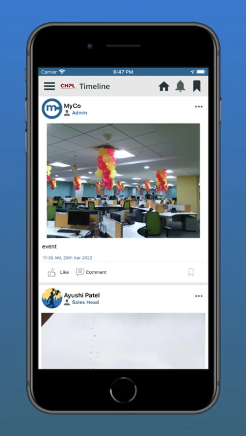 MyCo App is an environment software comprising of various feature those include but not limited to Member Directory cum Intercom of the Organization, Digital Notice Board, Event Planning and Management, Front Office Management, Vendor Listing of an Organization, Emergency Number of respective Organization, Document Management, Polling and Survey within the Organization and most importantly the Internal TIMELINE restricted only for members of the company.