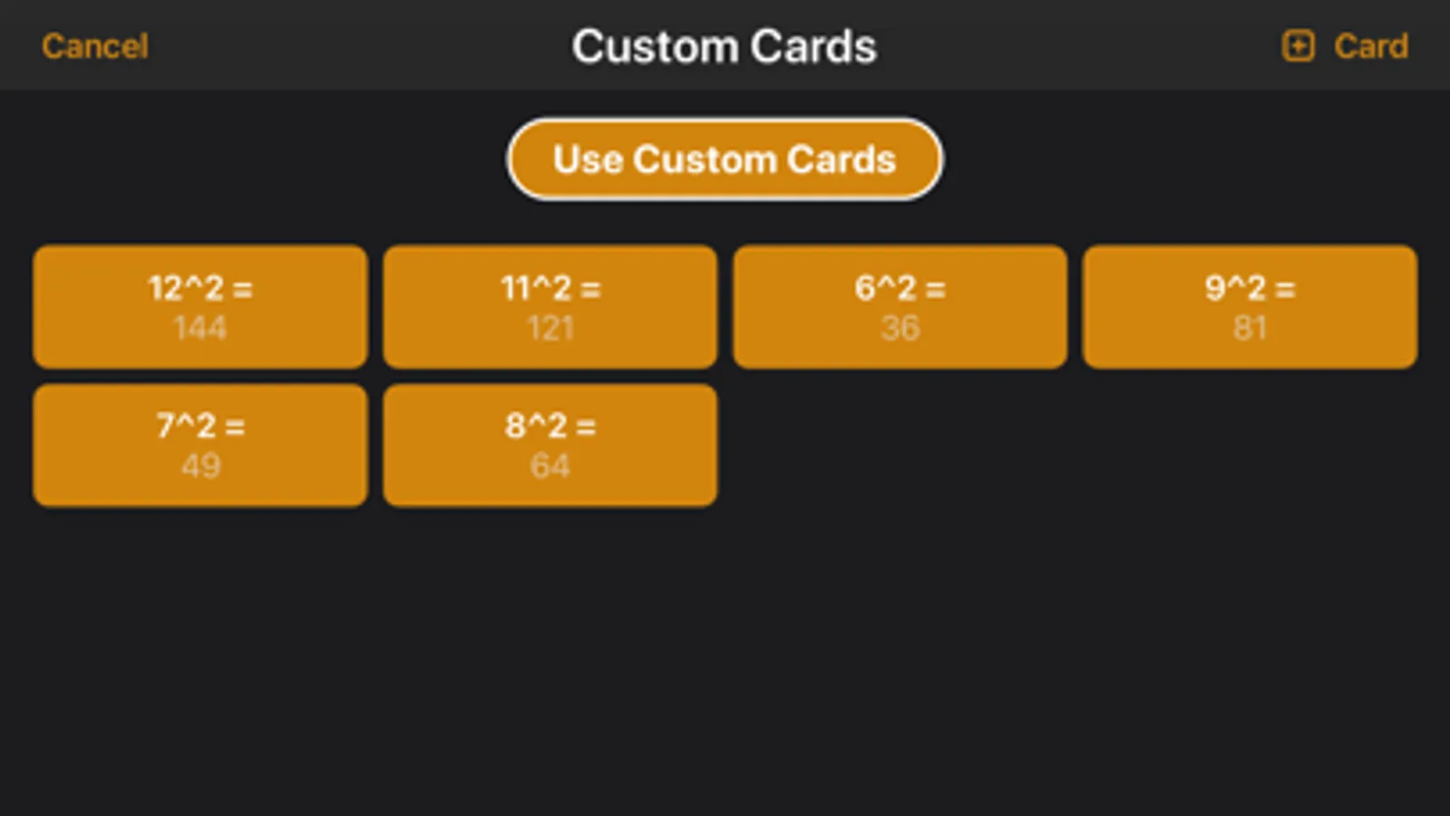 Simply swipe right to declare Correct or swipe left declare Incorrect. Any incorrect cards can be revisited by pressing the 'Keep Going' button after the cards run out, allowing you to practice any missed cards more frequently.