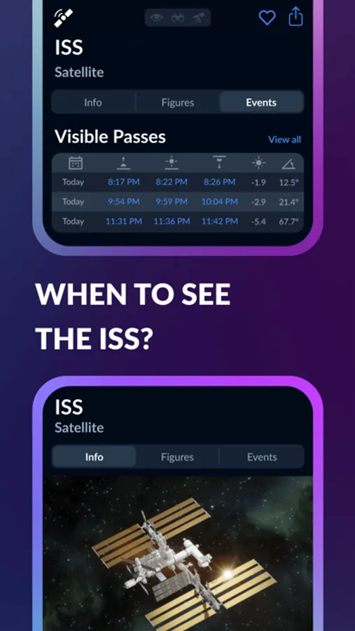 ► Point your device at the sky to see the real-time positions of space objects on the interactive sky map.