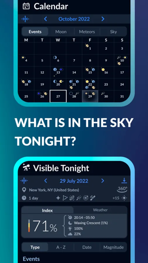 ◆ ASTRONOMY CALENDAR WITH A STARGAZING INDEX AND WEATHER FORECAST
