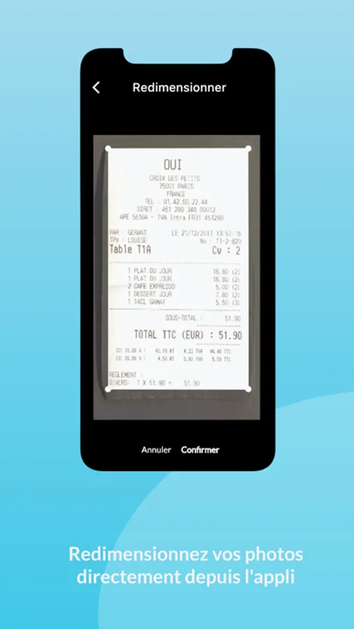 Photographiez vos justificatifs (factures d'achat, notes de frais) et retrouvez-les dans votre bannette Evoliz. Allez plus loin en affectant vos notes de frais directement depuis l'appli !