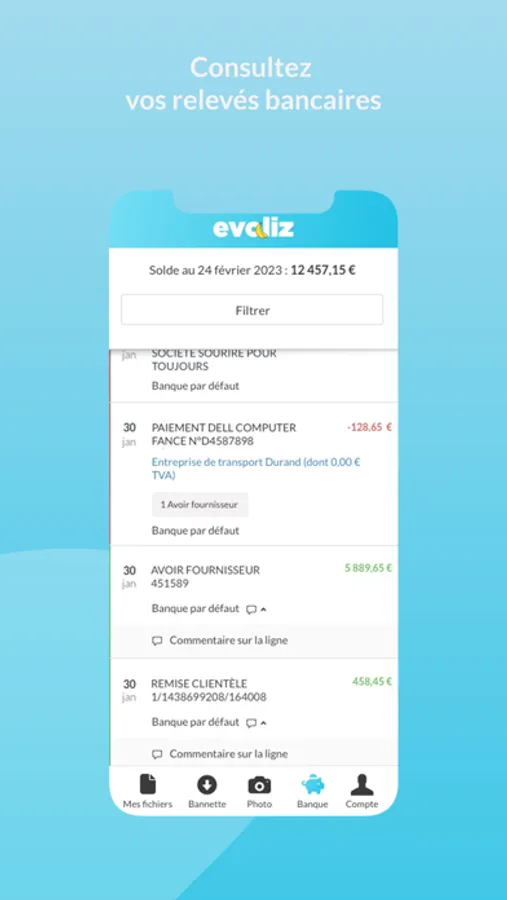 En un coup d'œil, retrouvez vos relevés bancaires : entrées, sorties, vous avez toutes les infos !