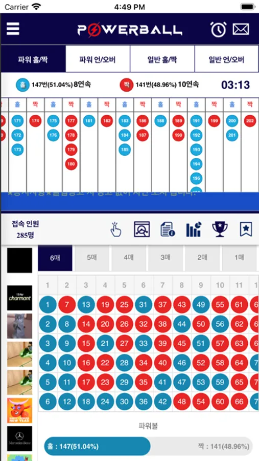 -파워볼 홀/짝/언/오버, 일반볼 홀/짝/언/오버