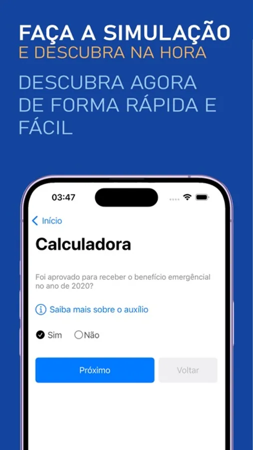 Aplicativo de informativos sobre o auxílio emergencial. Descubra agora se tem direito ao benefício de forma rápida e prática, leva menos de 2 minutos.