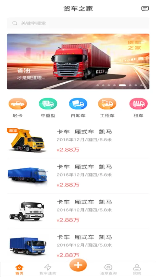 京城货车 APP是可以在手机上发布货车信息和查询货车信息的手机软件,你可以将自己的货车信息发布出去来寻找合适的买家,可以在这里寻找你满意的货车信息来购买货车,软件使用简单方便,安全可靠,节约你的时间成本。