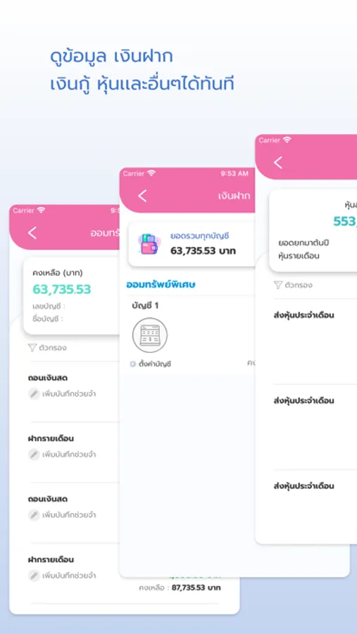 - ดูยอดเงิน รายการเคลื่อนไหวบัญชีเงินฝาก