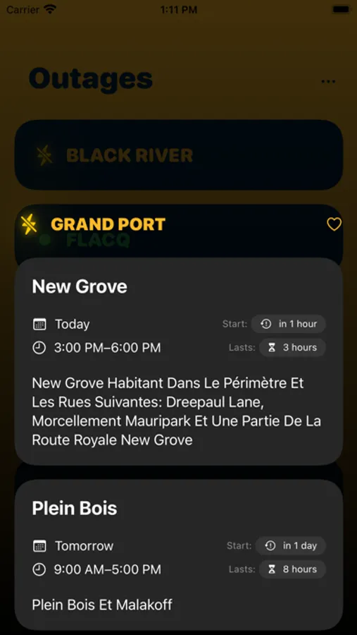 Enable "Alerts for Favorites" from the ... menu to get notifications when an outage is expected in your favourite localities.