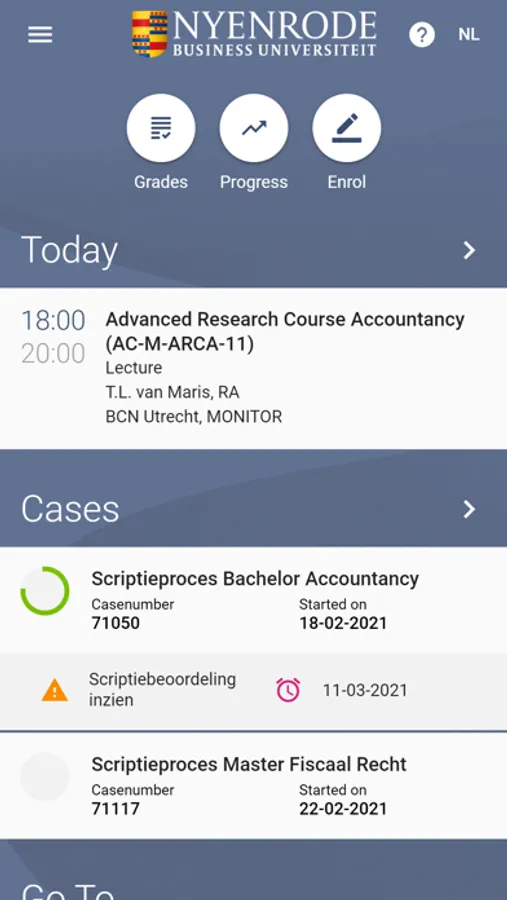 Stay informed of your study progress with the Nyenrode OSIRIS student app. This app gives access to your personal information and you can view messages and your class schedule.
