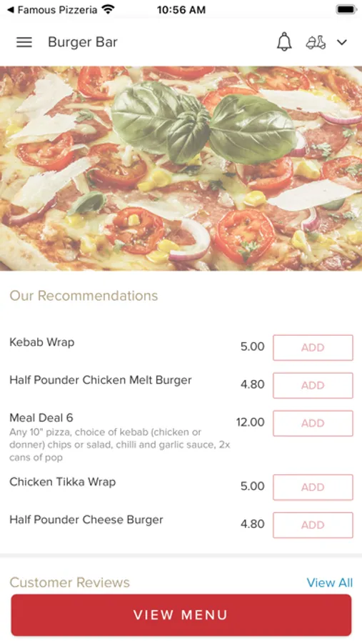 Here at Burger Bar, we serve a variety of food such as; pizzas, burgers, wraps, kebabs and more.