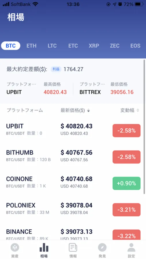 (2) メジャー暗号通貨のそれぞれの最大約定価格と最小約定価格の相場情報をリアールタイムに配信できます。