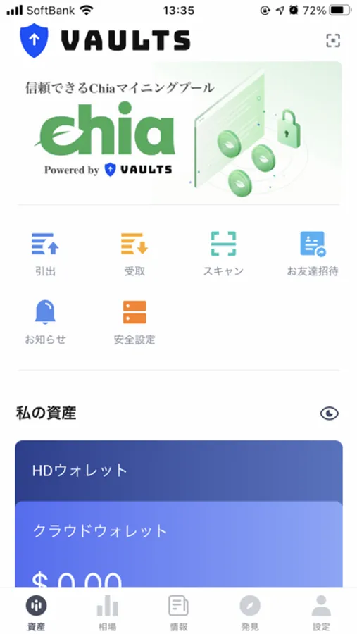(5) 信頼できる Chia マイニングプールを提供します。マイナーがVaultsアプリを介して、便利にストレージをレンタルすることが可能で、自分の持っている「マイストレージ」と「マイニング収益」を確認することができます。