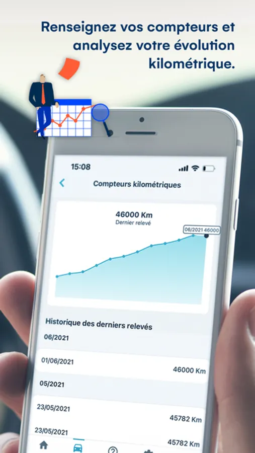 En toute autonomie, vous pouvez accéder aux informations de votre véhicule et les transmettre à votre gestionnaire de flotte, directement depuis votre smartphone. Votre tableau de bord personnalisable vous permet de :