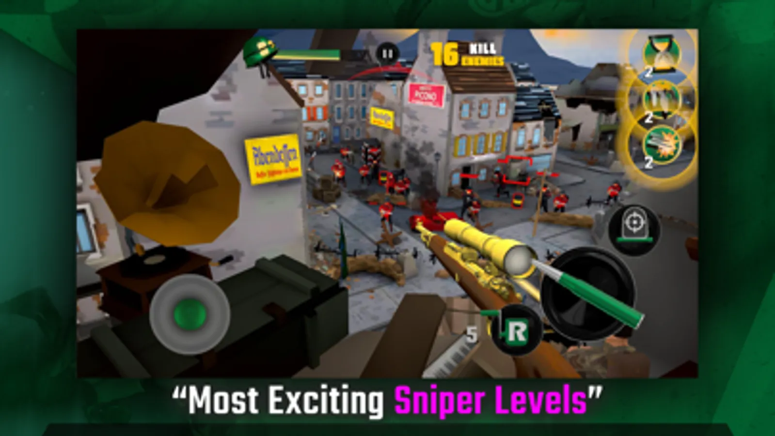 ● Sniper games? Boring. Start shooting real enemies not props carrying suitcases. Become a Machine Gunner, not a Sniper and fire millions of bullets on evil.